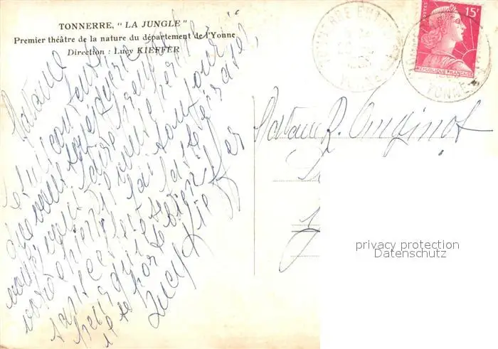 Tonnerre Theatre Nature La Jungle Tonnerre postalisch gelaufen 1955 Erhaltung siehe scans [KathaD81] Kathoren