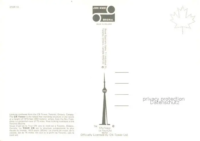 Toronto_Canada Northeast view Toronto Canada postalisch nicht gelaufen nach 1965 Erhaltung siehe scans [LiesaD40] LiesID40
