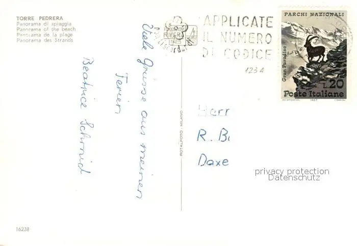 Torre_Pedrera Strand Torre Pedrera postalisch gelaufen nach 1965 Erhaltung siehe scans [NatalD47] NataID47