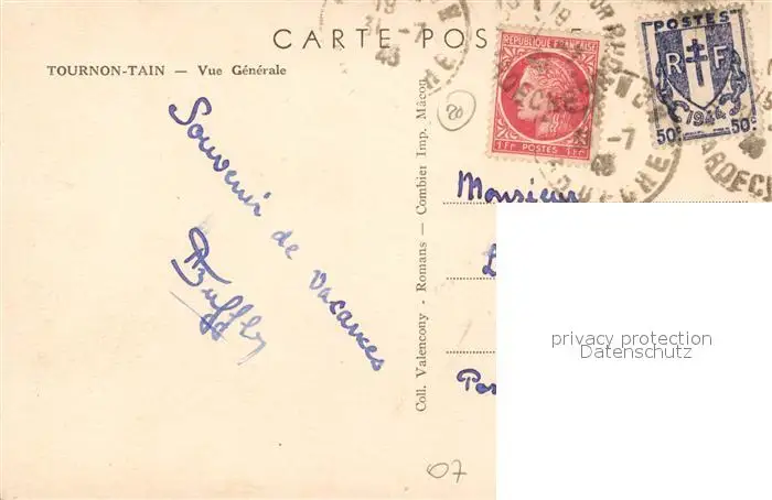 Tournon-sur-Rhone Vue generale Tournon-sur-Rhone postalisch gelaufen 1948 Erhaltung siehe scans [WerneD78] WernPID7