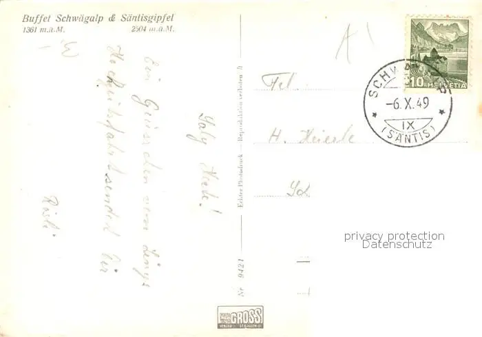 Trachten_Schweiz Appenzeller Senn Pfeife postalisch gelaufen 1949 Erhaltung siehe scans [PaolaD17] PaolPID1