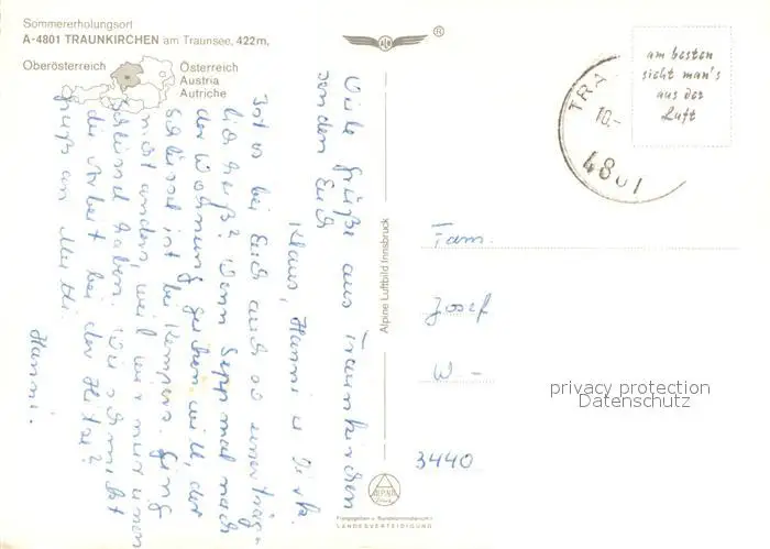 Traunkirchen Fliegeraufnahme Traunkirchen postalisch gelaufen nach 1965 Erhaltung siehe scans [KathaD81] Kathoren