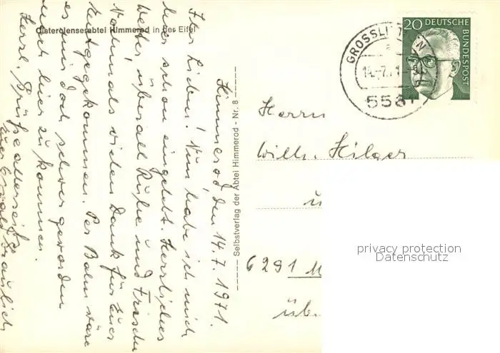 Trier Cistercienserabtei Himmerod Trier postalisch gelaufen 1971 Erhaltung siehe scans [NatalD47] NataID47