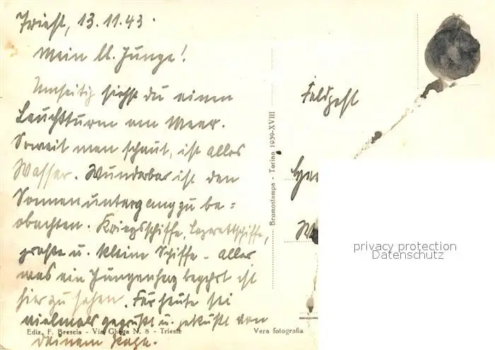 Trieste Faro Vittoria Trieste postalisch nicht gelaufen 1943 Feldpost Erhaltung siehe scans [NatalD47] Feldpost NataID47