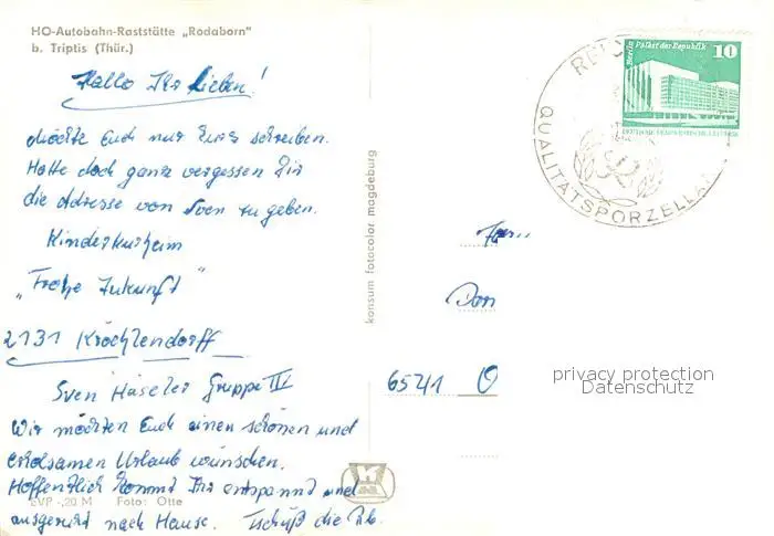 Triptis HO Autobahn Raststaette Rodaborn Triptis postalisch gelaufen nach 1965 Erhaltung siehe scans [WerneD78] WernPID7