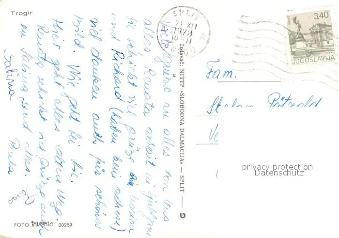 Trogir Fliegeraufnahme Trogir postalisch gelaufen 1973 Erhaltung siehe scans [WerneD78] WernPID7