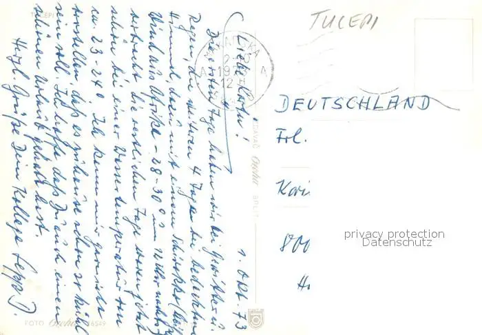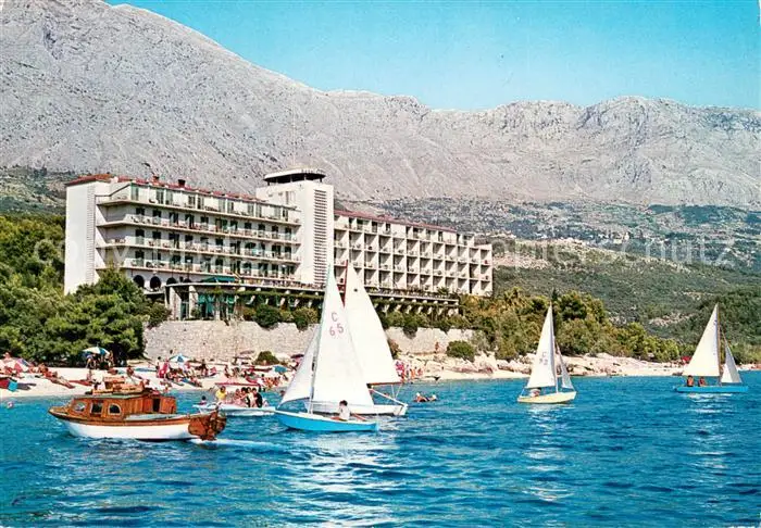 Tucepi Hotel am Strand Segeln Ansicht vom Meer aus Berge Tucepi postalisch gelaufen 1973 Erhaltung siehe scans [FriedD77] Frierer