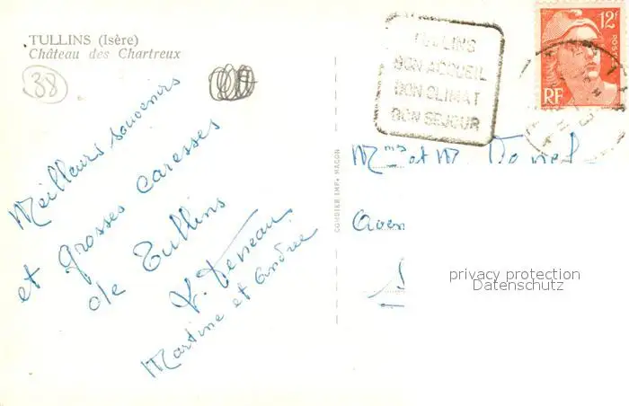 Tullins Château des Chartreux Tullins postalisch gelaufen 1921-1965 Erhaltung siehe scans [FriedD77] Frierer