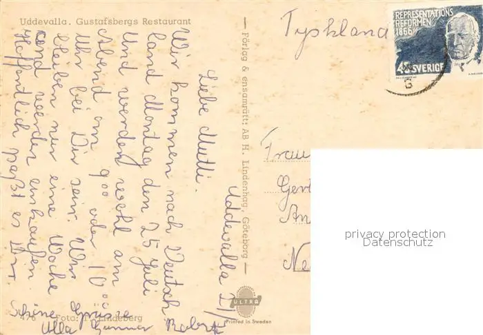Uddevalla_Sweden Gustafsbergs Restaurant postalisch gelaufen nach 1965 Erhaltung siehe scans [WerneD78] WernPID7
