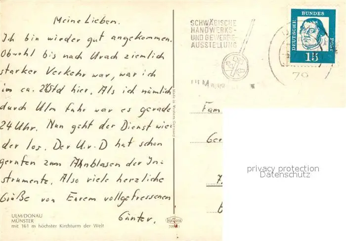 Ulm_Donau Ulmer Muenster Ulm_Donau postalisch gelaufen 1965 Erhaltung siehe scans [WerneD78] WernPID7