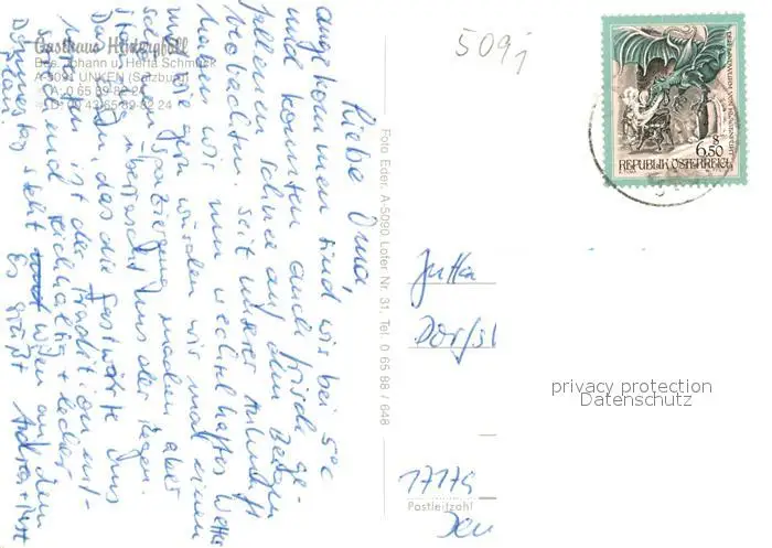 Unken Gasthaus Hintergfoell Unken postalisch gelaufen nach 1965 Erhaltung siehe scans [KathaD81] Kathoren