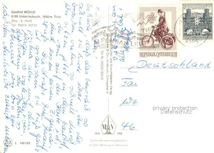Unterleutasch Gasthof M?hle Unterleutasch postalisch gelaufen nach 1965 Erhaltung siehe scans [PaolaD17] PaolPID1
