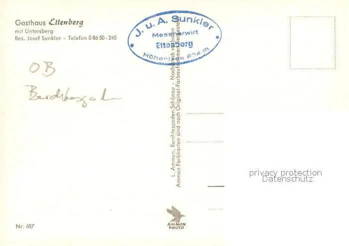 Untersberg Gasthaus Ettenberg Untersberg postalisch nicht gelaufen nach 1965 Erhaltung siehe scans [WerneD78] WernPID7