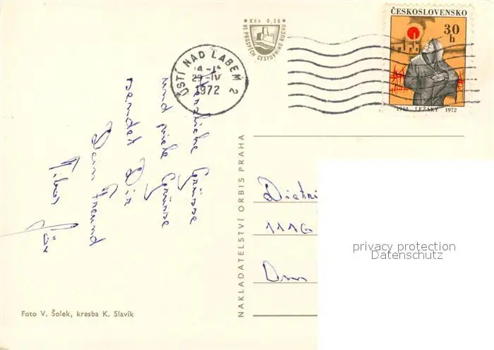 Usti_nad_Labem Sehenswuerdigkeiten Stadtplan Usti_nad_Labem postalisch gelaufen 1972 Erhaltung siehe scans [KathaD81] Kathoren