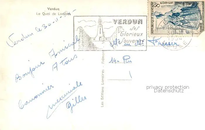 VERDUN_Meuse Quai de Londres Verdun Meuse postalisch gelaufen 1954 Erhaltung siehe scans [FriedD77] Frierer
