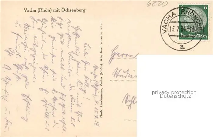 Vacha mit oechsenberg Vacha postalisch gelaufen 1934 Erhaltung siehe scans [WerneD78] WernPID7