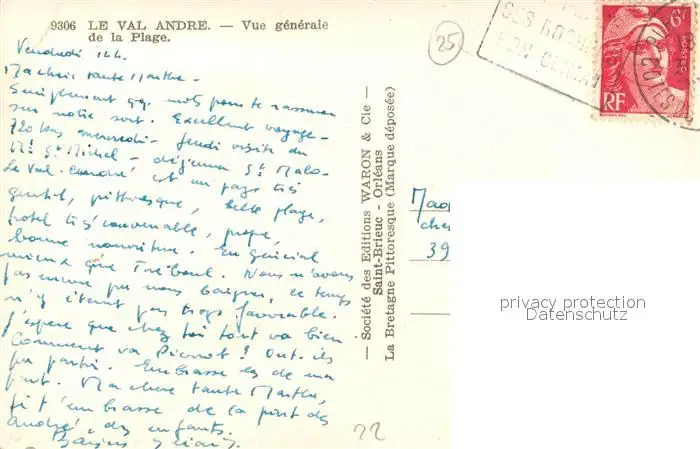 Val-Andre Panorama Plage Val-Andre postalisch gelaufen 1921-1965 Erhaltung siehe scans [KathaD81] Kathoren
