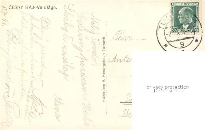 Valdstyn Cesky Raj Valdstyn postalisch gelaufen 1938 Erhaltung siehe scans [LiesaD40] LiesID40