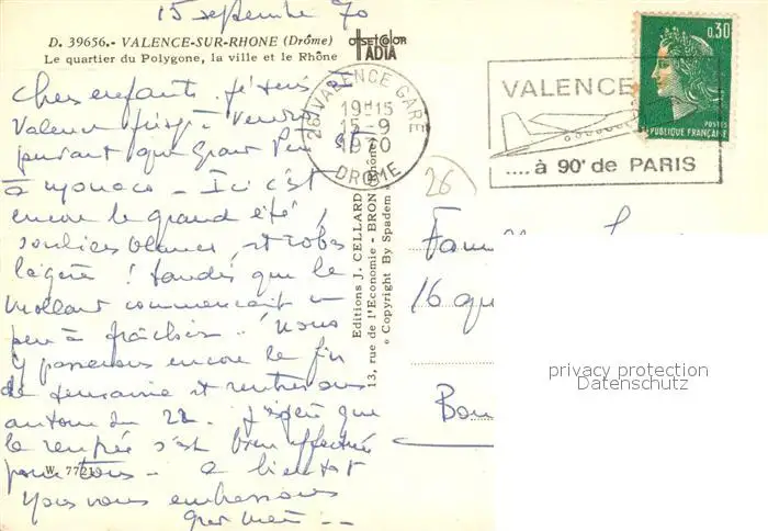 Valence_sur_Rhone Fliegeraufnahme quartier Polygone Valence_sur_Rhone postalisch gelaufen 1970 Erhaltung siehe scans [NatalD47] NataID47