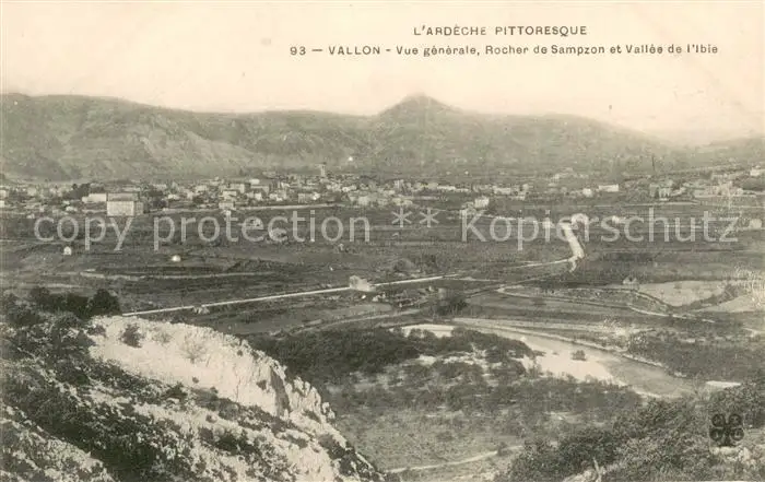 Vallon-Pont-d_Arc Vue générale Rocher de Sampzon Vallée de l'Ibie Vallon-Pont-d Arc postalisch nicht gelaufen 1921-1965 Erhaltung siehe scans [FriedD77] Frierer