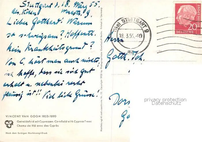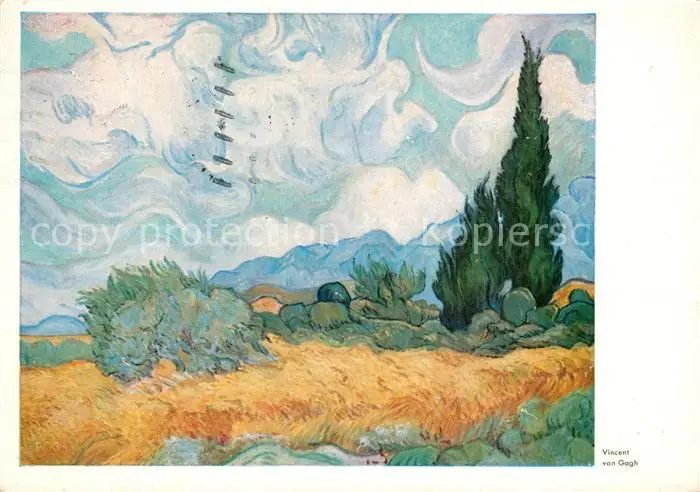 Van_Gogh_Vincent Getreidefeld mit Cypressen Van_Gogh_Vincent postalisch gelaufen 1955 Erhaltung siehe scans [PaolaD17] PaolPID1