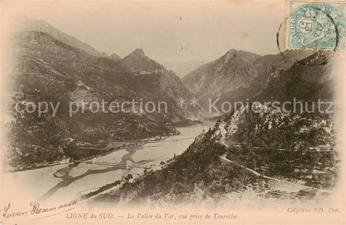 Var_Region Ligne du Sud La Vallee du Var vue prise de Tourettes postalisch gelaufen 1903 Erhaltung siehe scans [WerneD78] WernPID7