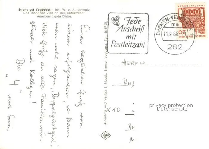 Vegesack Strandlust Vegesack postalisch gelaufen 1966 Erhaltung siehe scans [LiesaD40] LiesID40