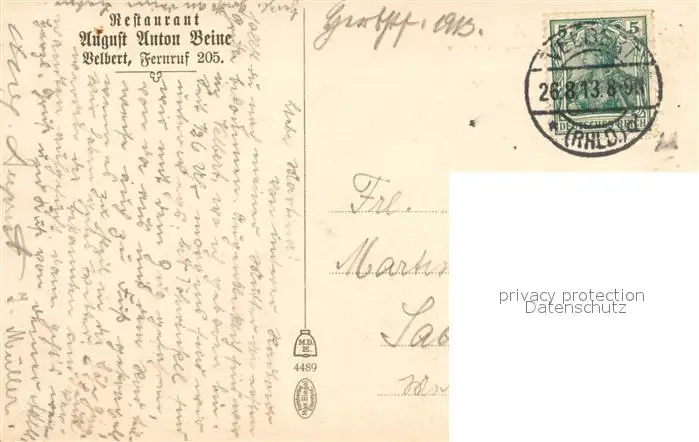 Velbert Realgymnasium und Realschule Velbert postalisch gelaufen 1913 Erhaltung siehe scans [WerneD78] WernPID7