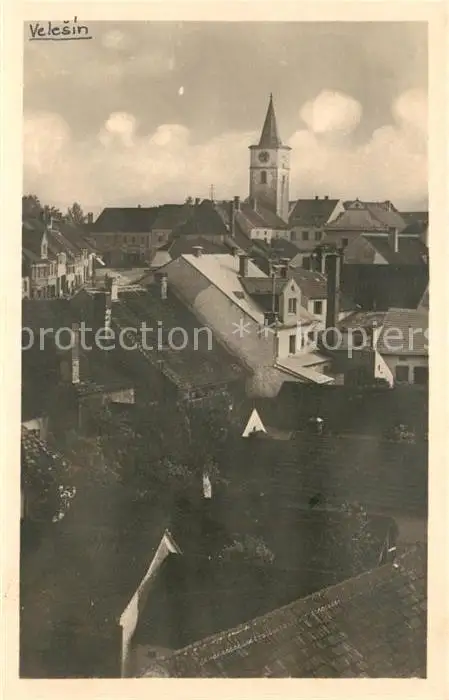 AK / Ansichtskarte Velesin Blick ueber den Daechern mit Kirche Velesin