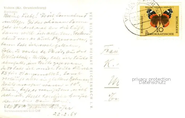 Velten Rathaus Velten postalisch gelaufen 1964 Erhaltung siehe scans [WerneD78] WernPID7