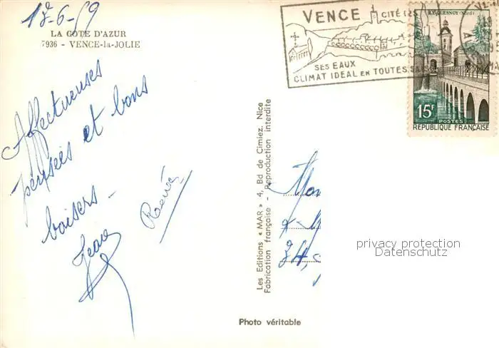 Vence-la-Jolie Vue d'ensemble Vence-la-Jolie postalisch gelaufen 1959 Erhaltung siehe scans [FriedD77] Frierer