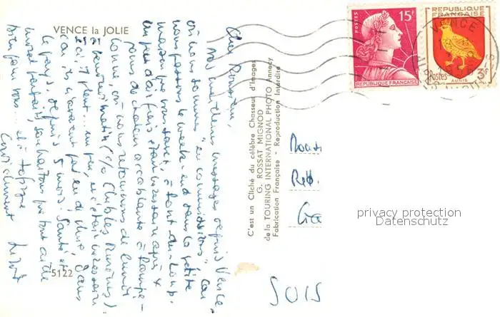Vence-la-Jolie Vue partielle Vence-la-Jolie postalisch gelaufen 1956 Erhaltung siehe scans [WerneD78] WernPID7