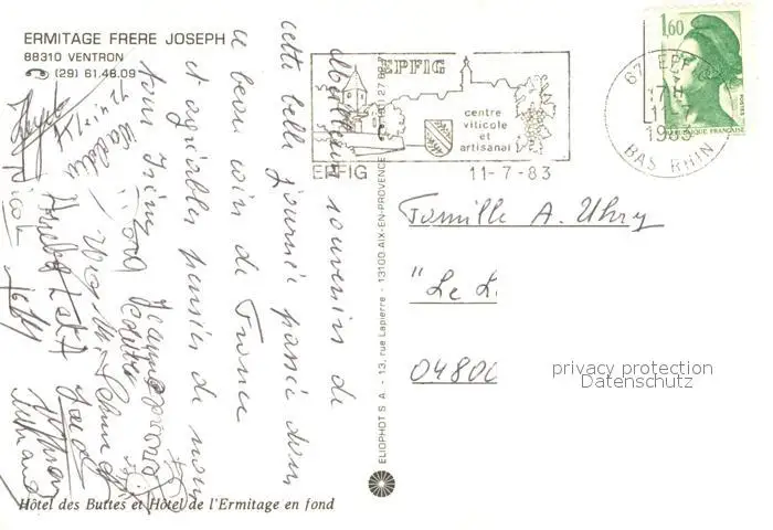 Ventron_Vosges Ermitage Frère Joseph Ventron Vosges postalisch gelaufen 1983 Erhaltung siehe scans [FriedD77] Frierer