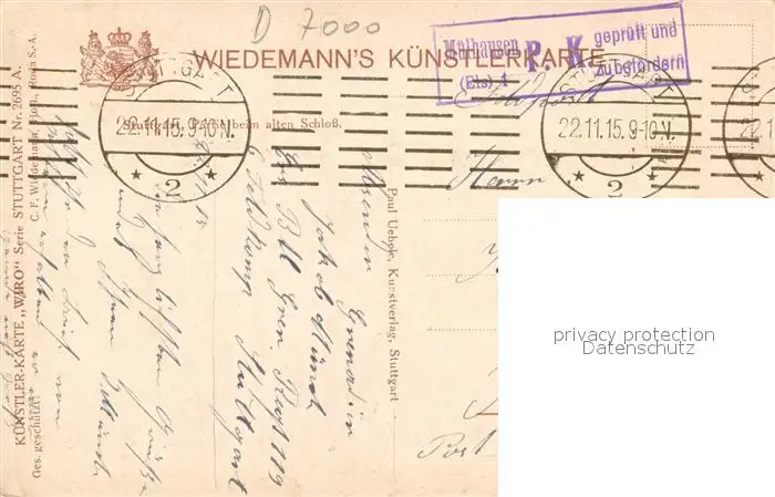 Verlag_Wiedemann_WIRO_Nr. 2695 A Stuttgart Altes Schloss postalisch gelaufen 1915 Feldpost Erhaltung siehe scans [PaolaD17] Feldpost PaolPID1