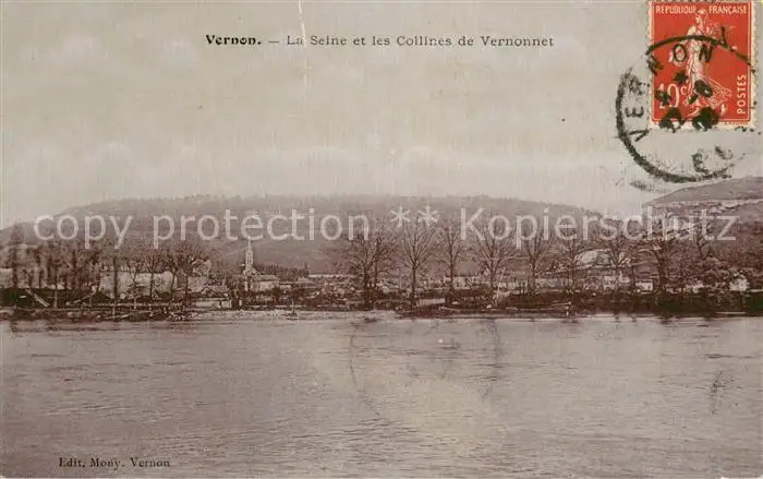 Vernon_Eure La Seine et les Collines de Vernonnet Vernon Eure postalisch gelaufen 1908 Erhaltung siehe scans [WerneD78] WernPID7