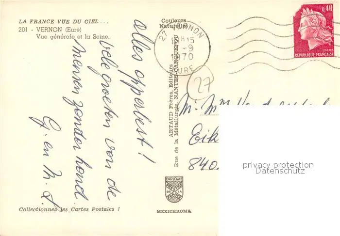 Vernon_Eure Vue aérienne sur la Seine Vernon Eure postalisch gelaufen 1970 Erhaltung siehe scans [FriedD77] Frierer