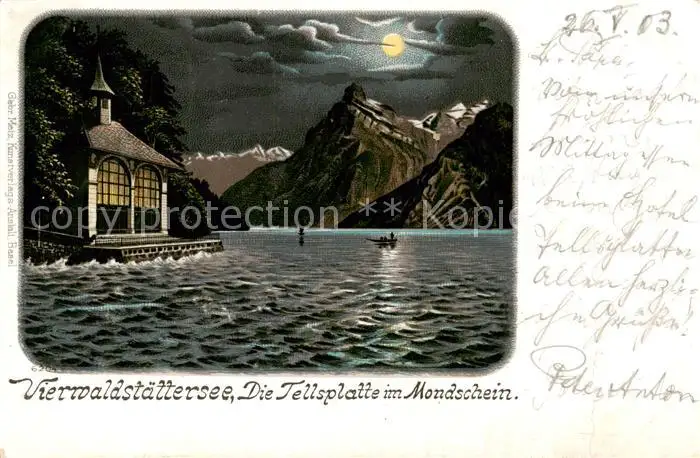 Vierwaldstaettersee_Vierwaldstaedtersee_SZ Die Tellsplatte im Mondschein postalisch gelaufen 1903 Erhaltung siehe scans [FriedD77] Frierer