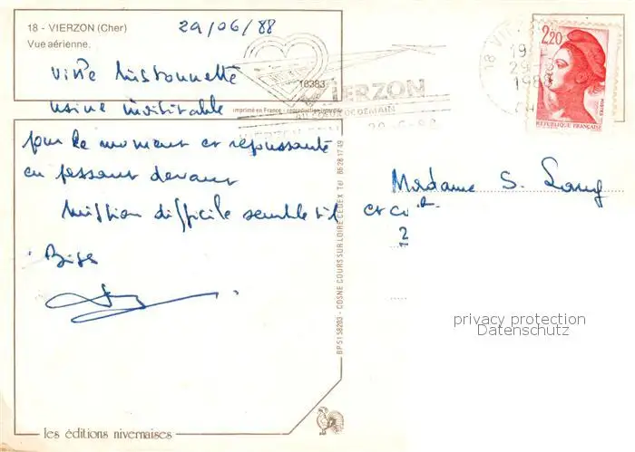 Vierzon_18 Vue aerienne postalisch gelaufen 1988 Erhaltung siehe scans [WerneD78] WernPID7