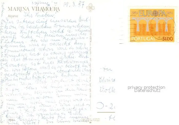 Vilamoura Marina Algarv Vilamoura postalisch gelaufen 1987 Erhaltung siehe scans [LiesaD40] LiesID40