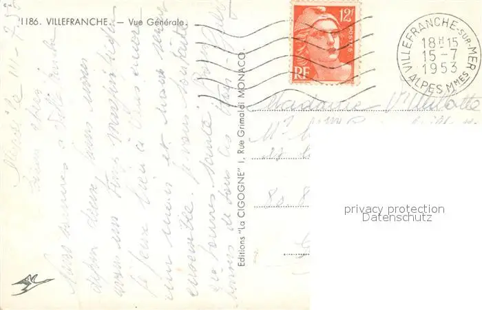 Villefranche-sur-Mer Vue generale Villefranche-sur-Mer postalisch gelaufen 1953 Erhaltung siehe scans [WerneD78] WernPID7