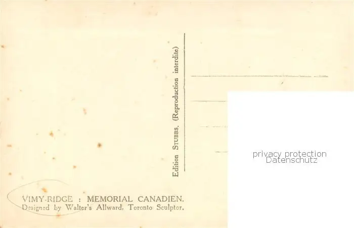 Vimy-Ridge_UK Memorial Canadien postalisch nicht gelaufen 1921-1965 Erhaltung siehe scans [WerneD78] WernPID7