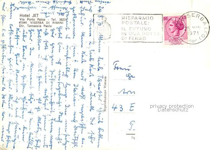 Viserba Hotel Jet Viserba postalisch gelaufen 1971 Erhaltung siehe scans [WerneD78] WernPID7