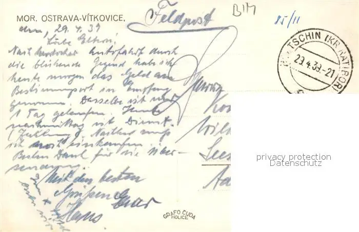 Vitkovice Vitkovice postalisch gelaufen 1939 Feldpost Erhaltung siehe scans [NatalD47] Feldpost NataID47