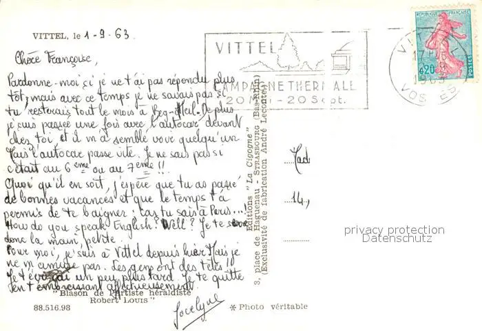 Vittel Vue d’ensemble Le Casino Vittel postalisch gelaufen 1963 Erhaltung siehe scans [WerneD78] WernPID7