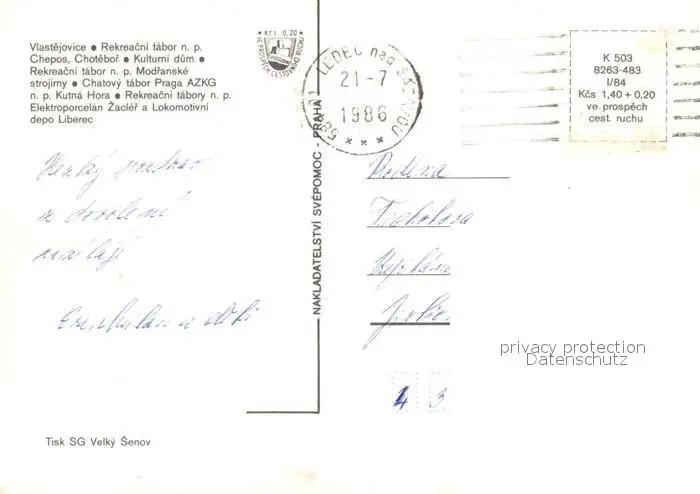 Vlastejovice Chepos Chotebor postalisch gelaufen 1986 Erhaltung siehe scans [NatalD47] NataID47