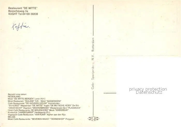 Vught Restaurant De Witte Vught postalisch nicht gelaufen nach 1965 Erhaltung siehe scans [WerneD78] WernPID7