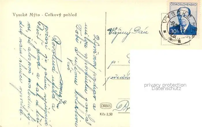 Vysoke_Myto Celkovy pohled Vysoke Myto postalisch gelaufen 1953 Erhaltung siehe scans [LiesaD40] LiesID40