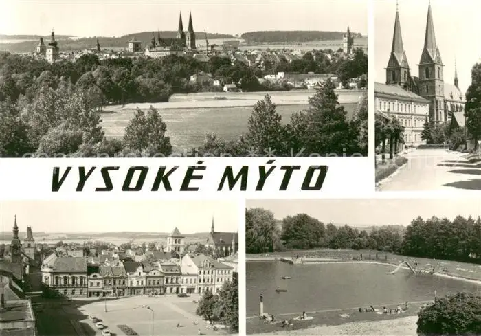 AK / Ansichtskarte Vysoke_Myto Teilansichtenm. Freibad u. Kirche Vysoke Myto