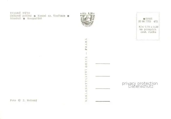 Vysoke_Myto Teilansichtenm. Freibad u. Kirche Vysoke Myto postalisch nicht gelaufen 1921-1965 Erhaltung siehe scans [LiesaD40] LiesID40