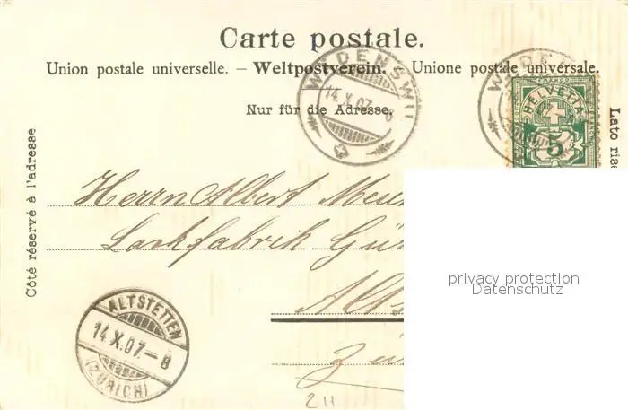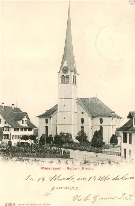 Waedenswil_Waedensweil_ZH Reformierte Kirche postalisch gelaufen 1907 Erhaltung siehe scans [WerneD78] WernPID7